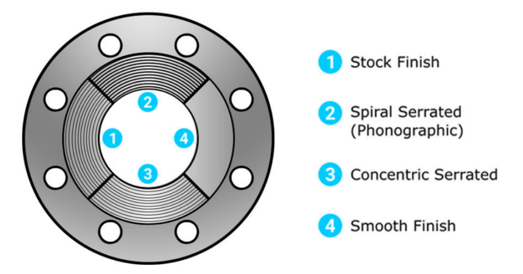 ASME B16.5 和 B16.47 法蘭的 4 種基本表面處理是庫(kù)存表面處理、螺旋鋸齒表面處理、同心鋸齒表面處理和光滑表面處理。