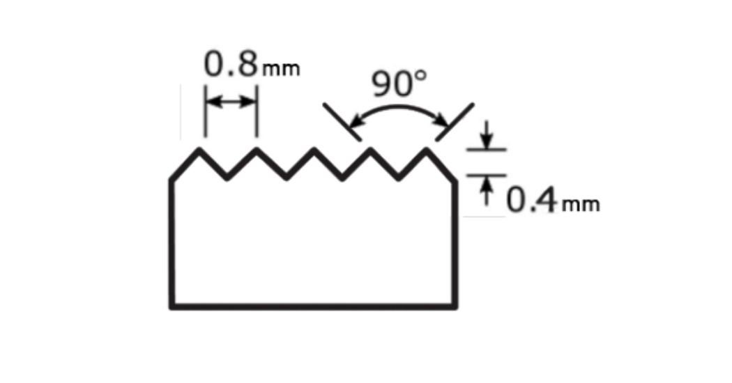 處理 螺旋鋸齒表面處理也是一個(gè)連續(xù)凹槽,類似于標(biāo)準(zhǔn)庫(kù)存表面處理,因?yàn)榘疾凼鞘褂?90° 夾角“V”工具生成的。對(duì)于所有尺寸,槽深 1/64”,進(jìn)給深度為 1/32”。